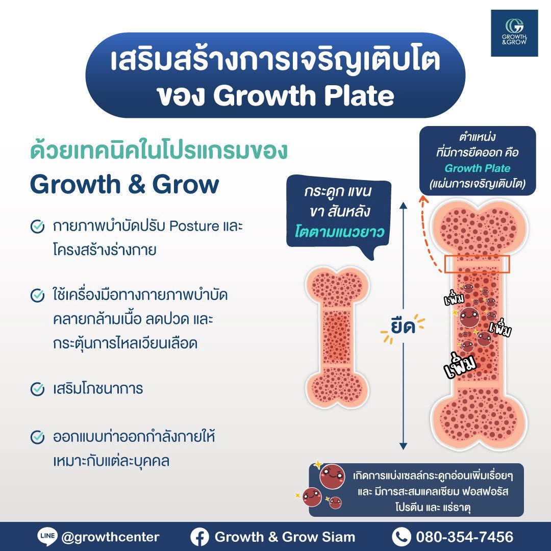 ณ Growth & Grow Medical Center เราเข้าใจว่าปัญหาและความต้องการ ในเรื่องของความสูงของแต่ละท่านย่อมแตกต่างกันไป เราจึงมีทีมแพทย์เฉพาะทาง นักกายภาพบำบัด และผู้เชี่ยวชาญ ในการให้คำปรึกษาและออกแบบการรักษาให้เหมาะสมกับความต้องการของแต่ละบุคคล ควบคู่ไปกับการใช้เครื่องมือที่ทันสมัย และการดูแลด้านโภชนาการ เพื่อยกระดับการเพิ่มความสูงให้มีประสิทธิภาพมากยิ่งขึ้น ทั้งเพิ่มการเผาผลาญพลังงานในร่างกายให้มากขึ้น เพิ่มการขยายตัวของกระดูก เพิ่มความแข็งแรง เร่งการฟื้นตัว ก่อนหรือหลังการออกกำลังกาย การทำงานหนัก คลายความตึงเครียดของกล้ามเนื้อ เพื่อเสริมสร้างความแข็งแรงและเห็นผลทันทีที่ได้เข้ารับการรักษา ซึ่งเป็นการเพิ่มความสูงอย่างปลอดภัยในระยะยาว ทุกท่านจึงสามารถวางใจและมั่นใจได้ว่าจะได้รับผลลัพธ์ที่ดีที่สุดอย่างประทับใจ