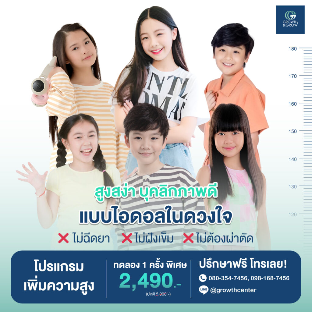 หากคุณเป็นอีกท่านหนึ่งที่ต้องการเพิ่มความสูงให้กับตัวท่านเอง หรือ ลูกน้อยที่น่ารัก Growth & Grow Medical Center คือคำตอบที่พร้อมตอบโจทย์ทุกข้อ และเราเป็นคลินิกเพิ่มความสูงที่ช่วยคุณได้ เพราะที่นี่เรามีความเชี่ยวชาญในการเสริมสร้าง และสานฝันในเรื่องของความสูงได้อย่างมีประสิทธิภาพ โดยแพทย์เฉพาะทาง นักกายภาพบำบัด และผู้เชี่ยวชาญของเราที่พร้อมให้คำแนะนำในทุกขั้นตอน โดยไม่จำเป็นต้องฉีดยา ผ่าตัด หรือ ฝังเข็ม ไม่เจ็บตัว